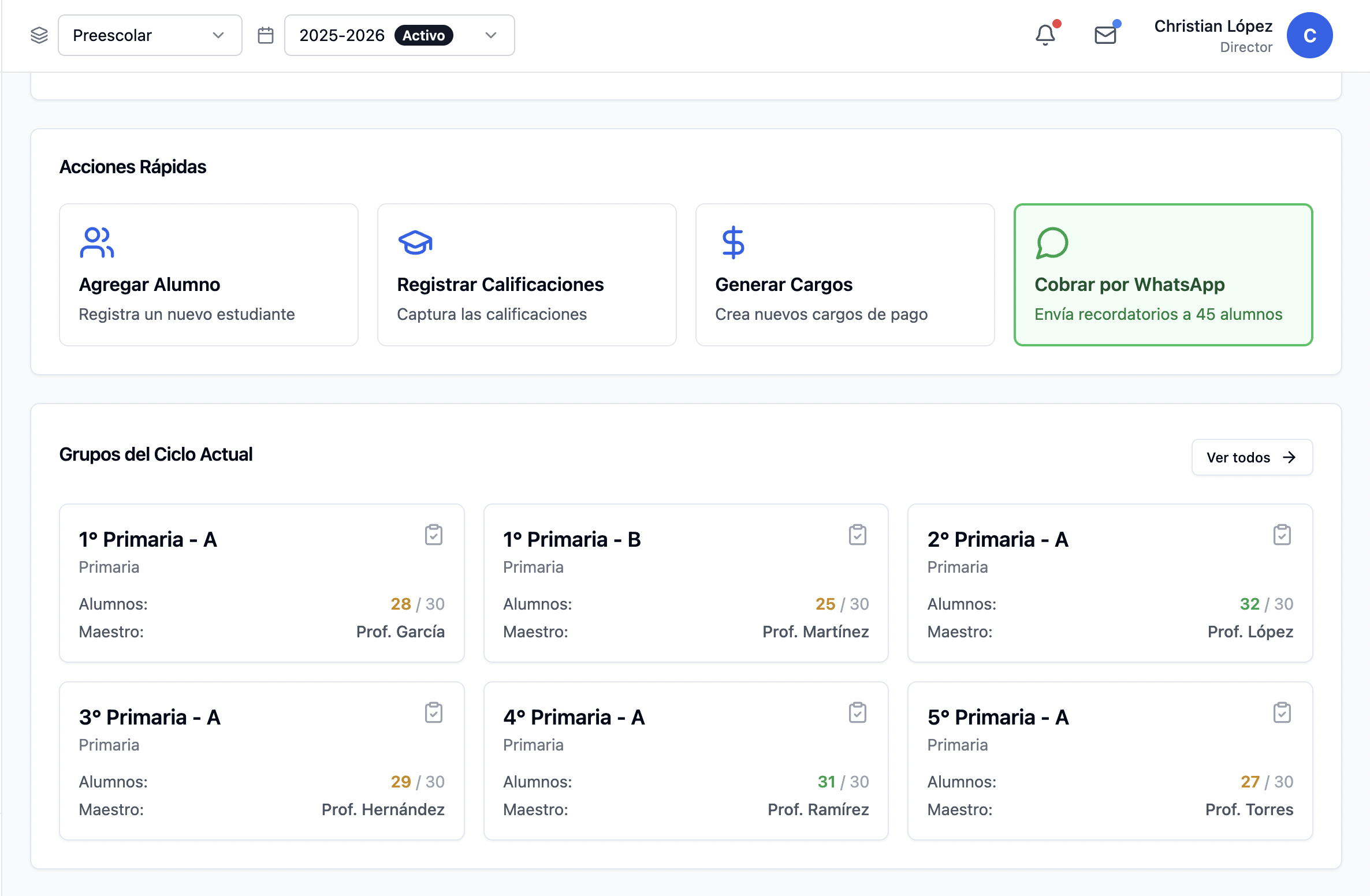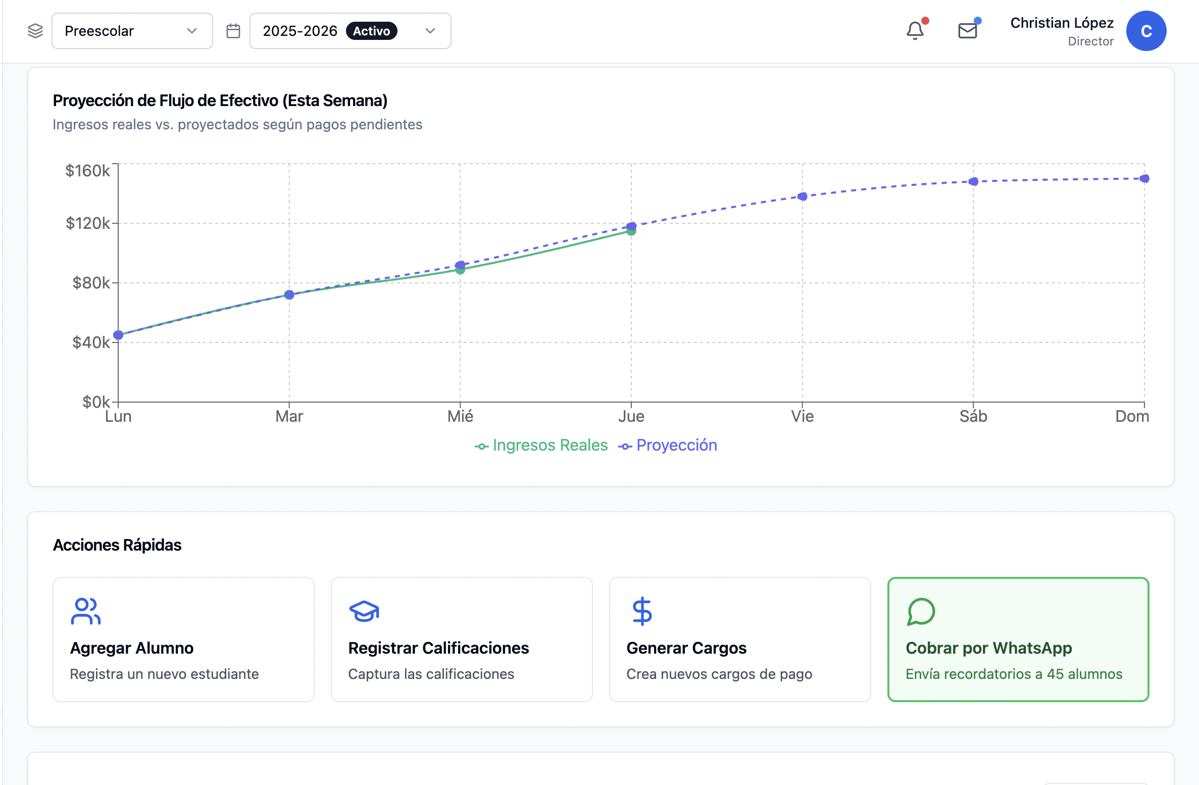 La plataforma financiera diseñada para colegios en México. Facturación 4.0 ilimitada, pagos con tarjeta y recordatorios inteligentes.